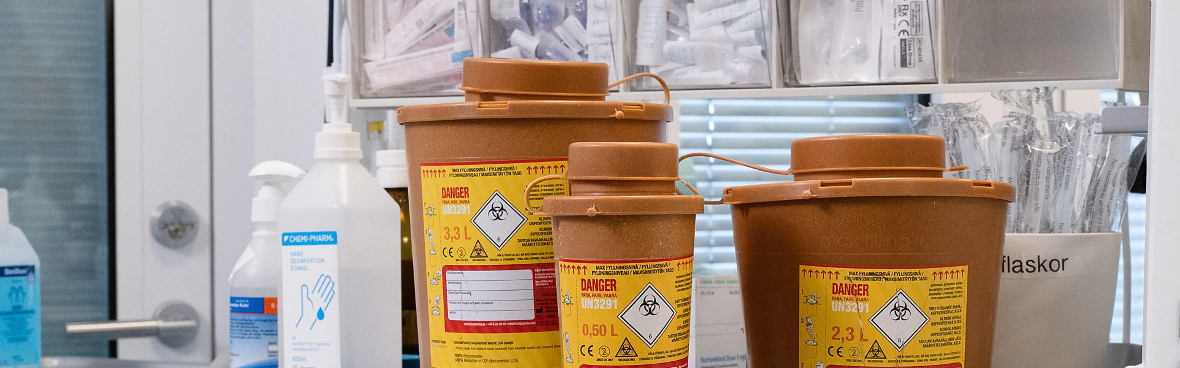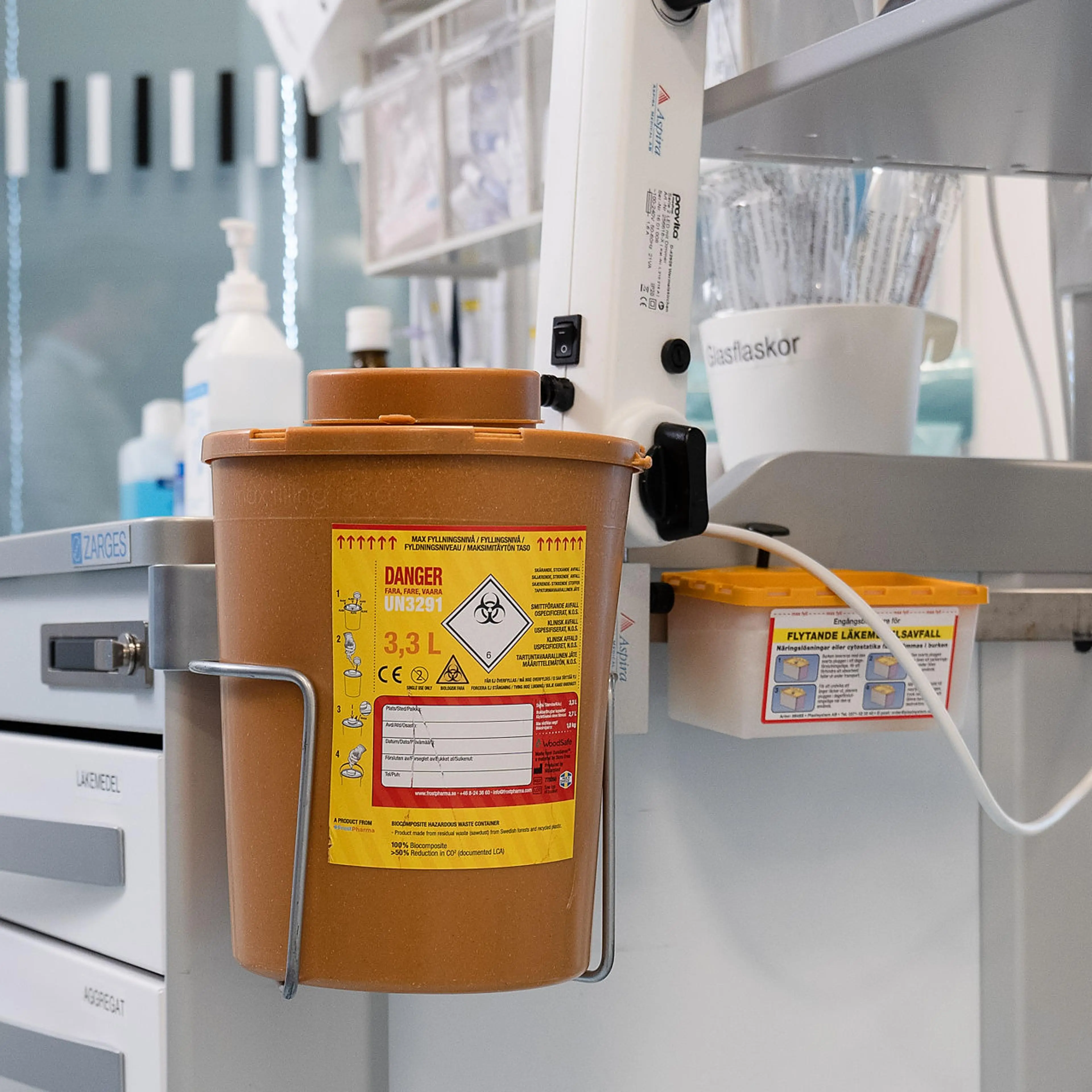 Nordiske aktører i helsesektoren kaster hvert år ti millioner risikoavfallsbeholdere, som målt i tonn er den tredje største kilden til plastavfall etter plasthansker og -forklær. Slik engangsplast har fordeler med tanke på hygiene og smittevern, men fører samtidig til mye avfall og utgjør et problem for miljøet. Faktisk står helsesektoren i Norge for over fire prosent av landets klimagassutslipp.