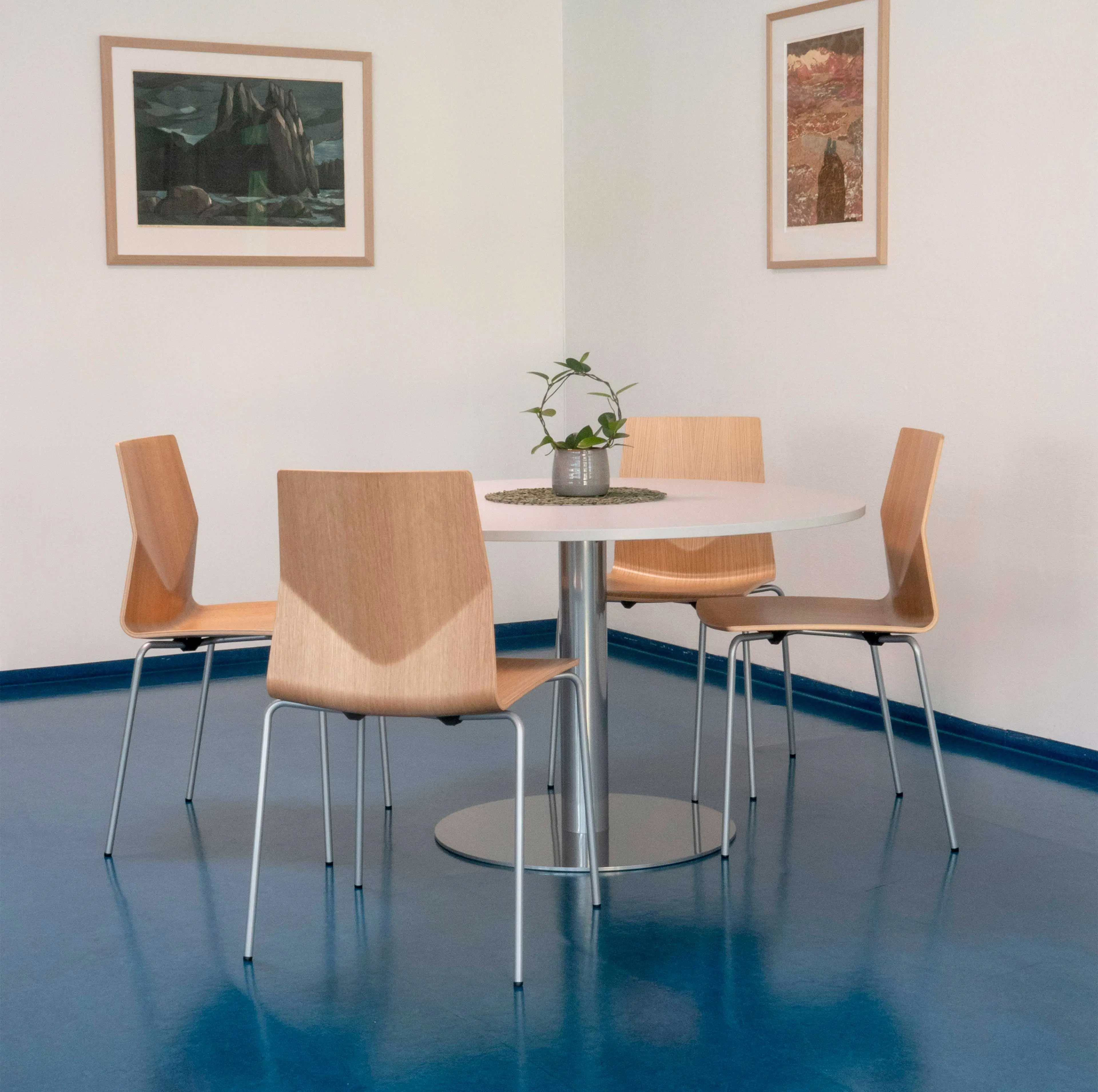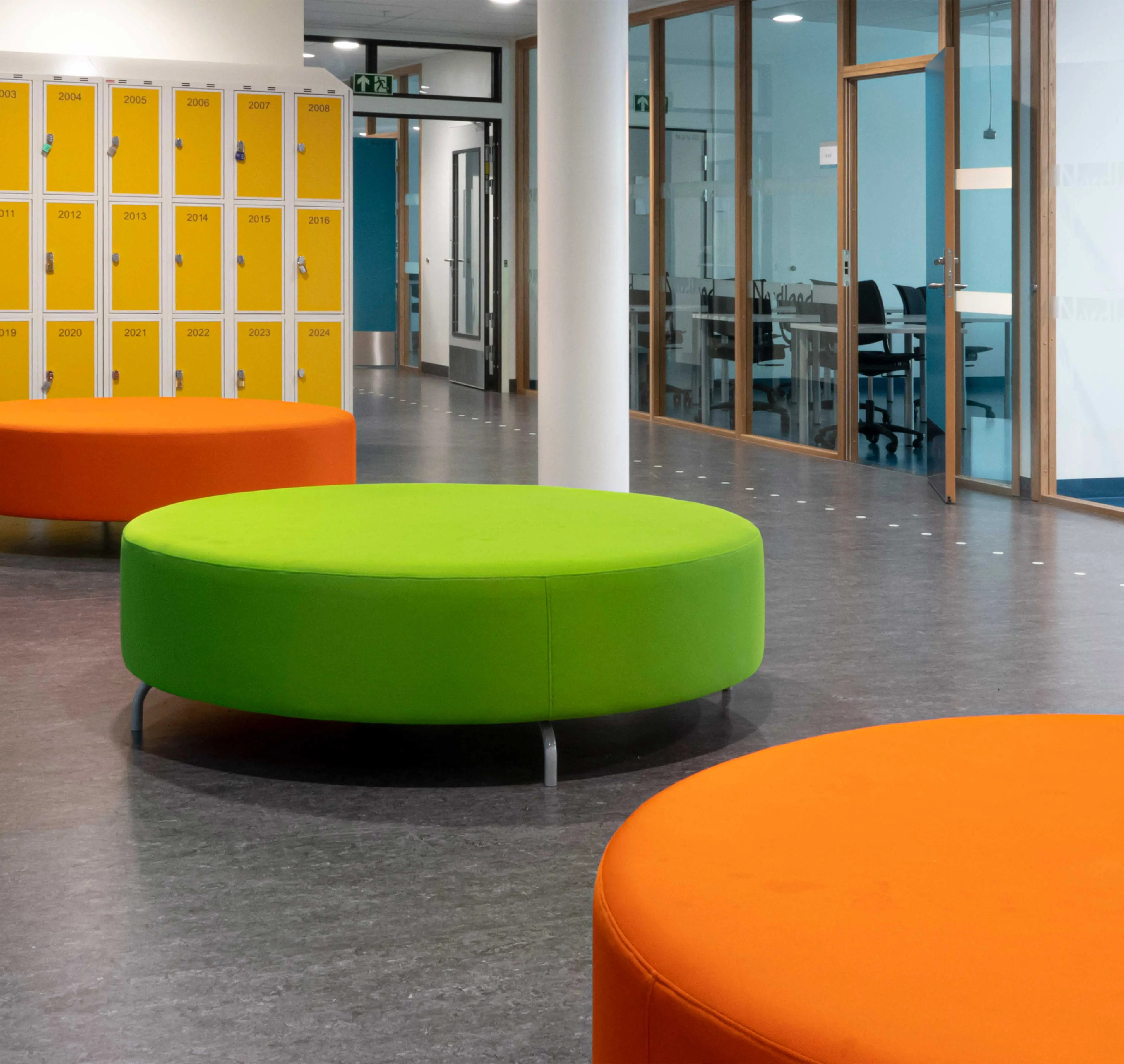 I et av våre største møbelprosjekt hittil leverte vi det aller meste av møbler til den imponerende skolen på Leknes. I tillegg til skole- og kontormøbler ble det også bestilt konferansemøbler, garderobeskap, møbler til kantinen, resepsjonsdisk, møbler til sosiale soner, samt møbler til biblioteket.
