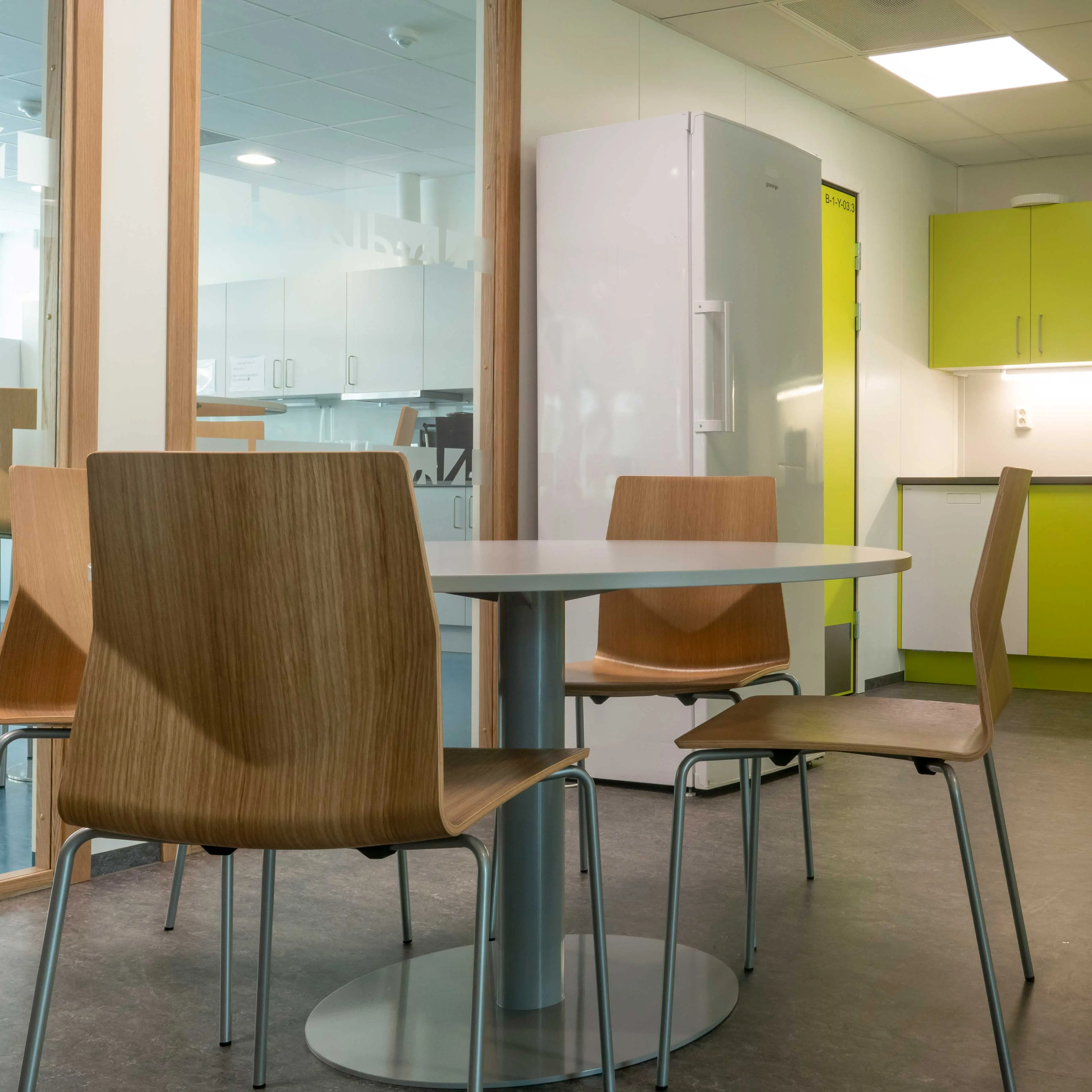 I et av våre største møbelprosjekt hittil leverte vi det aller meste av møbler til den imponerende skolen på Leknes. I tillegg til skole- og kontormøbler ble det også bestilt konferansemøbler, garderobeskap, møbler til kantinen, resepsjonsdisk, møbler til sosiale soner, samt møbler til biblioteket.
